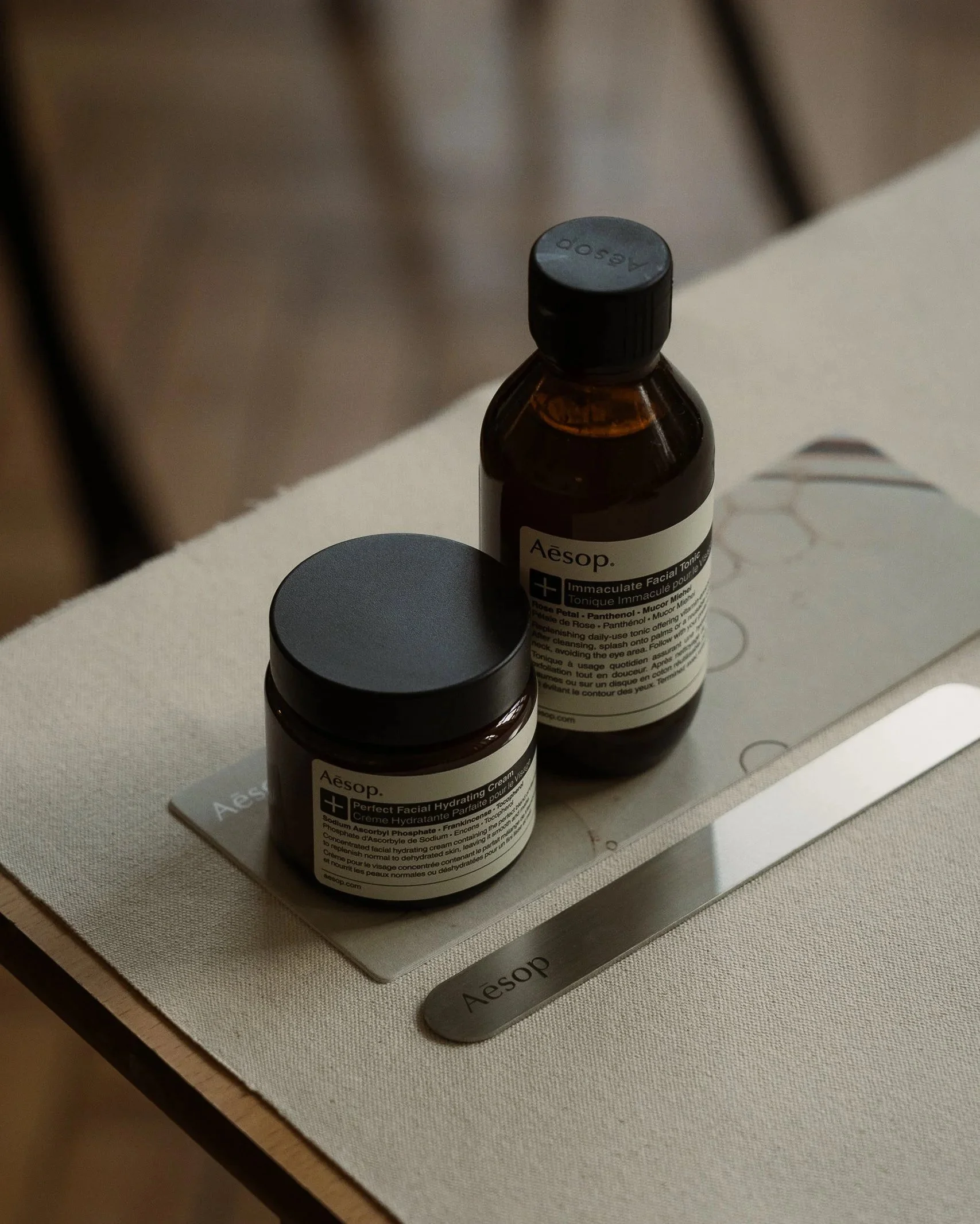 At the centre of the lesson sits the Immaculate Facial Tonic, the newest formulation within Aesop’s Skin Care+ range. True to the brand’s philosophy, the product is introduced with quiet confidence. The tonic is positioned as a refining step that balances, clarifies, and prepares the skin through a composition that feels measured rather than overstated. In typical Aēsop fashion, the language surrounding it remains thoughtful and almost academic, inviting users into process rather than promise.