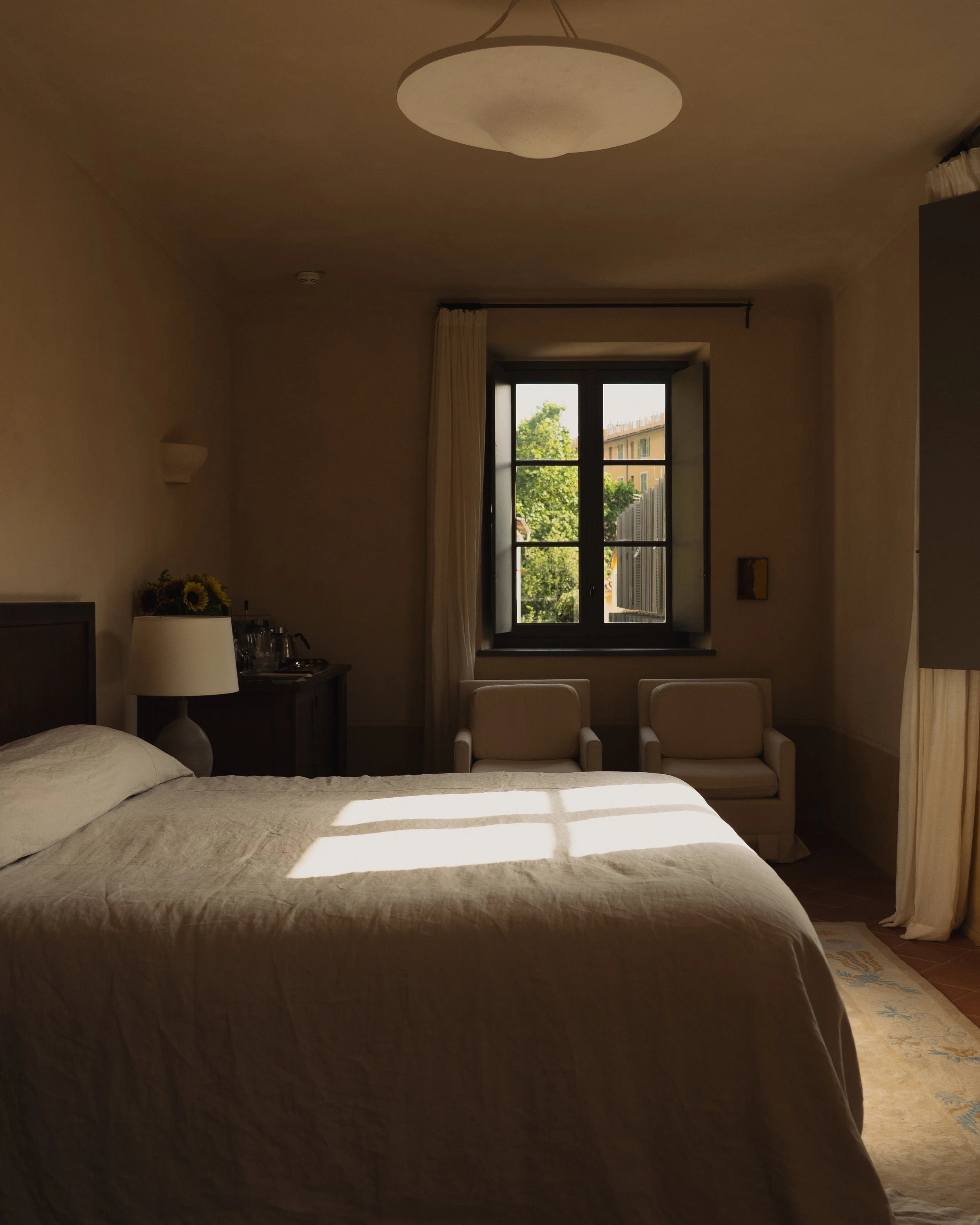 Up the steep, winding streets of Nice’s Old Town, past ochre façades and shuttered windows, a courtyard shaded by orange trees opens quietly behind heavy stone walls. Hôtel du Couvent feels less discovered than revealed. Once a 17th-century convent, the structure lay abandoned for decades before hotelier Valéry Grégo imagined a new life for it. Working with Studio Mumbai, he preserved original floors and weathered plaster while introducing new spaces with restraint. Beauty here lies in muted respect; walls remain imperfect, and a sense of monastic calm unfolds with each corner turned.